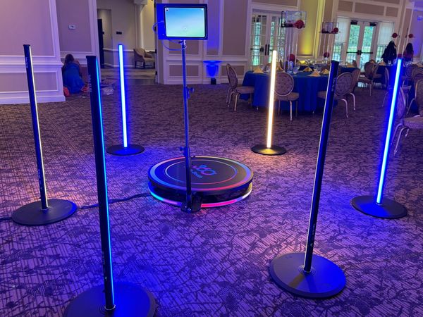 Power outlet required within 25 feet of booth. Photo Booth requires minimum space of 6'x8' (full setup 10'x10'). 360 Video Booth needs minimum space of 10'x10' (full setup 15'x20'). One small table provided for props. For outdoor setup, location must have: